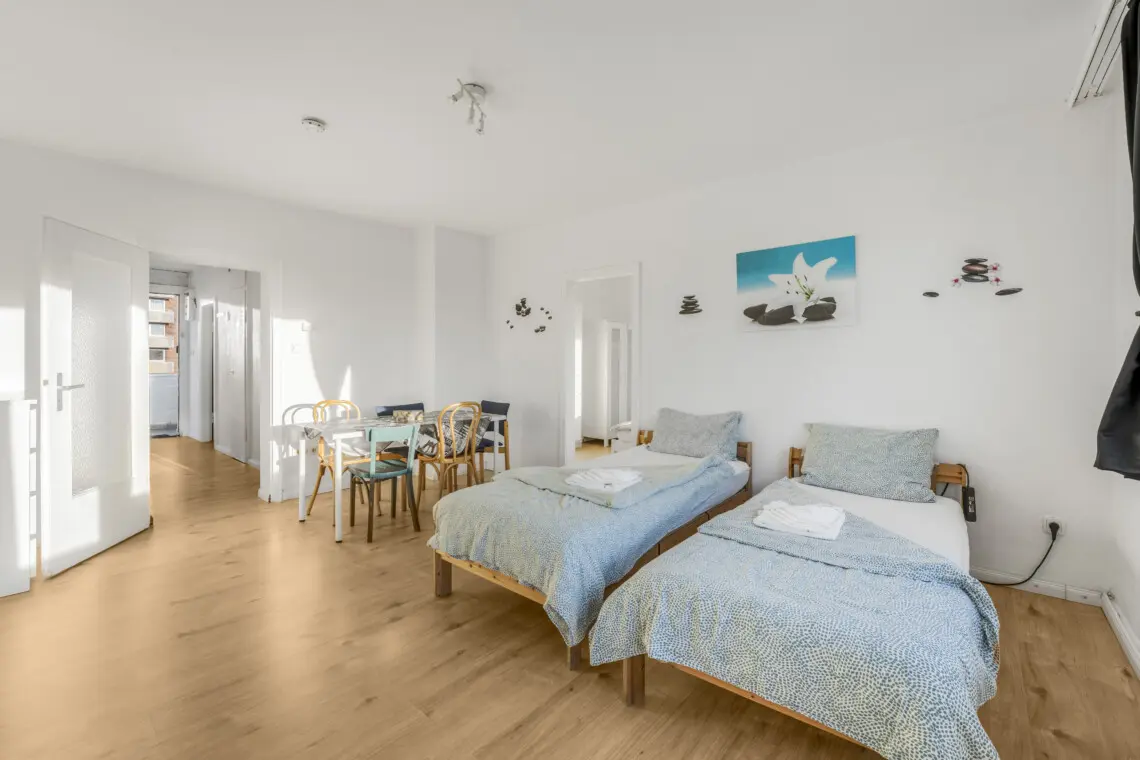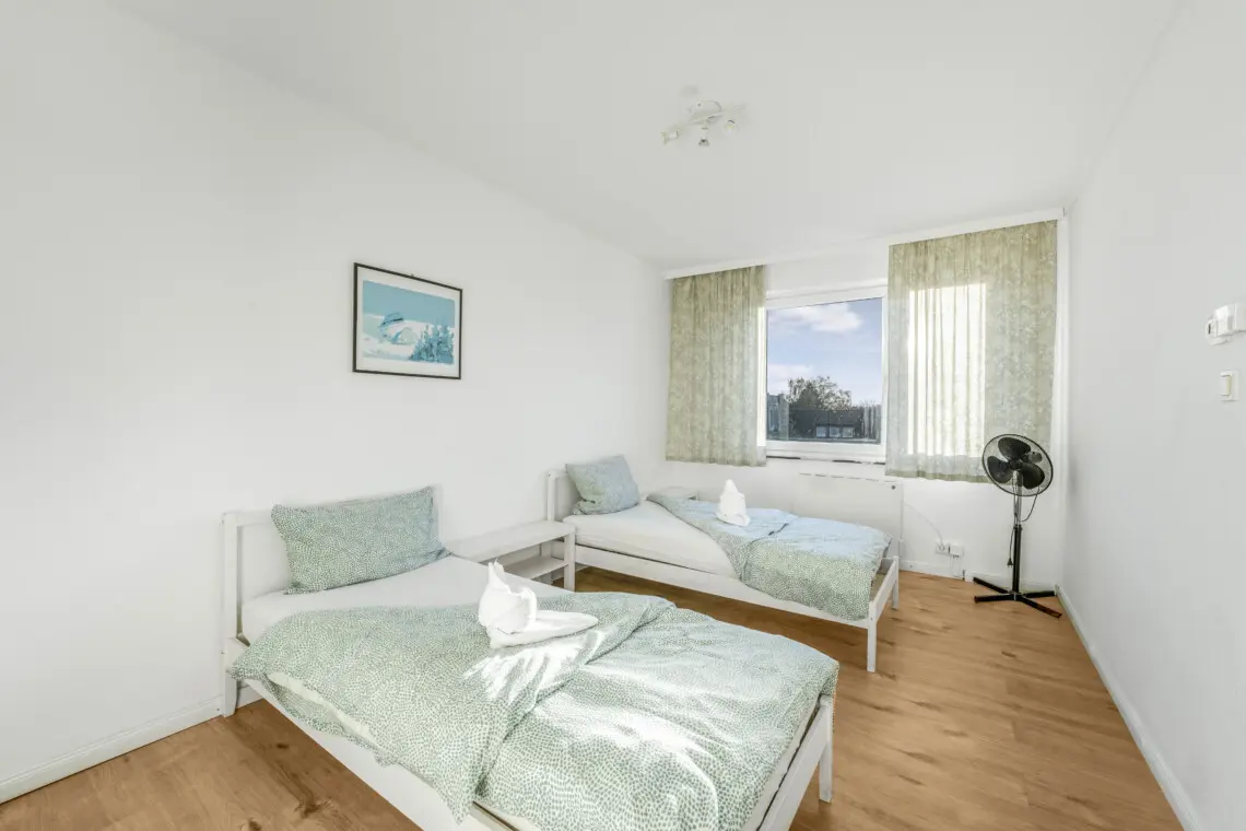 Das Apartment verfügt über 2 Schlafzimmer, die mit komfortablen Einzelbetten ausgestattet sind. Eins davon ist ein Durchgangszimmer